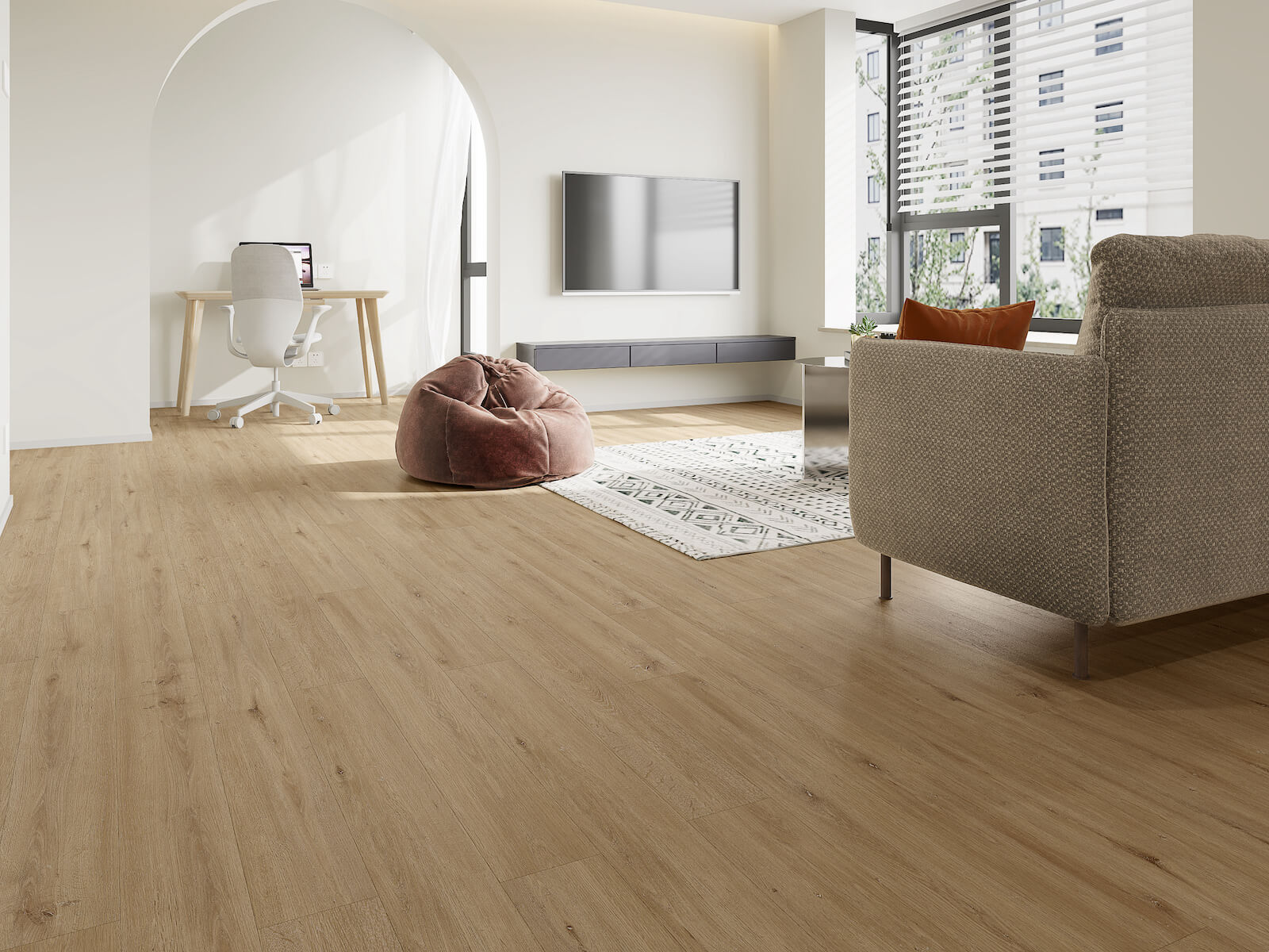 Backed with a 30 year residential and 15-year commercial wear warranty, it is an ideal option for high traffic areas for both your home and workplace. All these features will guarantee you enjoy a beautiful floor for many years to come. With 18 realistic wood designs to choose from it will bring both elegance and sophistication to any space of your home or workplace. The extra-long plank size is guaranteed to open up and enhance the look of your room.