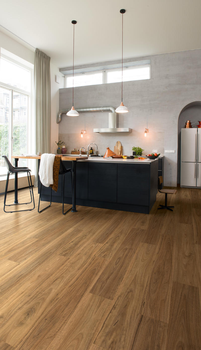 Quick-Step Impressive is a collection of authentic looking laminate flooring with wood designs that reflect some of the world’s finest hardwoods in these medium-sized planks. Select a local wood design or choose one that you have always admired with the wood detailing also extending to the floor joints.